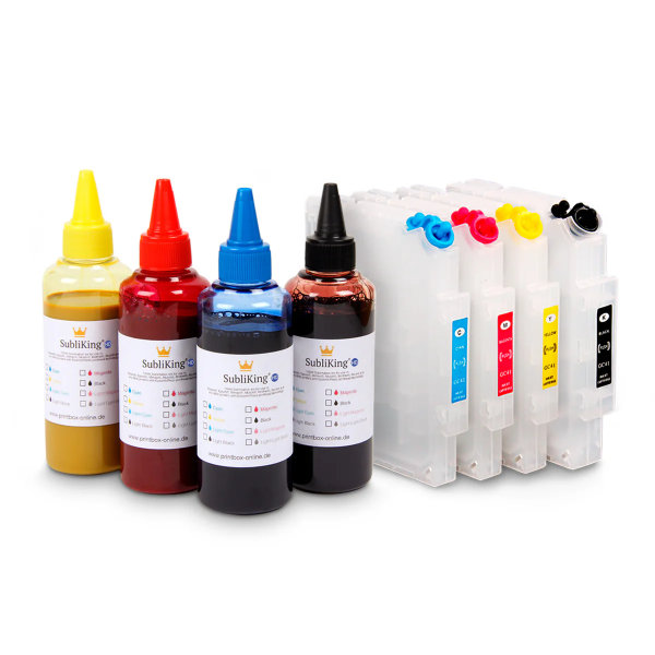 4 × 100 ml SubliKing®-HD tinta (Cyan, Magenta, Yellow, HD Black)
