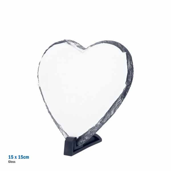 Foto ploča od priro. kamena za subli. u obliku srca, 15 × 15 cm – sjajna