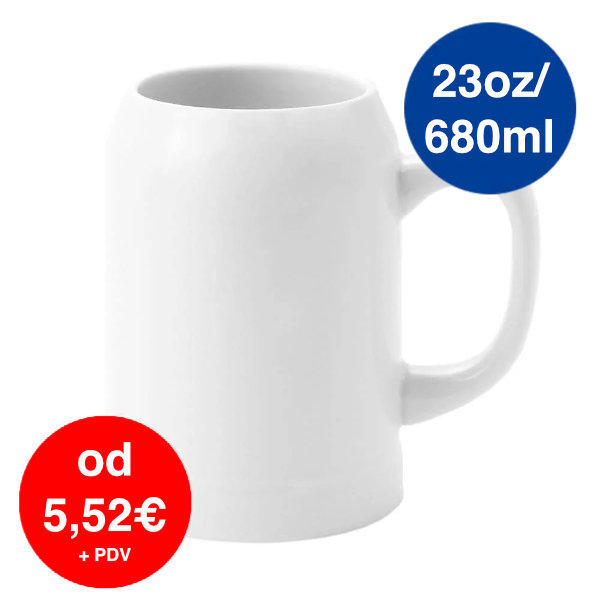 Krigla za pivo za sublimaciju 23 oz / 680 ml bijela