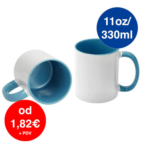 Šalica za sublimaciju 11 oz / 330 ml – unutrašnjost i ručka svjetloplava