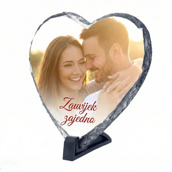 Foto ploča od priro. kamena za subli. u obliku srca, 15 × 15 cm – sjajna