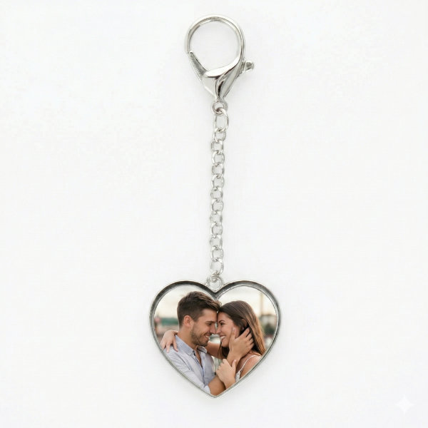 Privjesak izrađen od aluminija sa sjajnim završetkom, namijenjen za personalizaciju sublimacijom. Aluminijska pločica u obliku srca tiska se pomoću ravne transfer preše, a zatim učvršćuje na privjesak obostranom ljepljivom trakom.