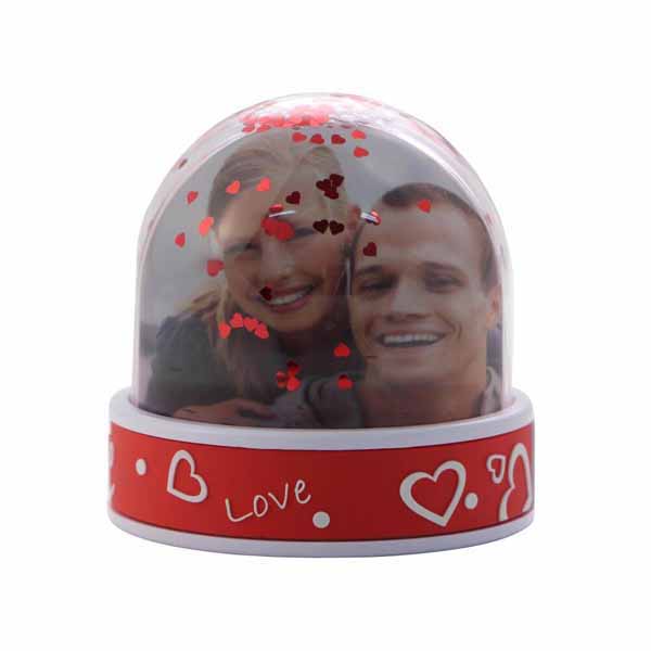 Foto snježna kugla 95 x 92 mm – ljubav s crvenim šljokicama u obliku srca