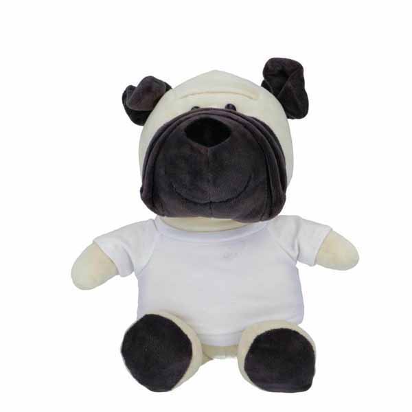 Ovaj plišani psić izrađen je od mekanog pliša. Bijela majica koju nosi napravljena je od 100% poliestera. Majicu možete jednostavno personalizirati sublimacijom pomoću ravne termo preše.